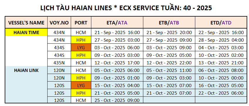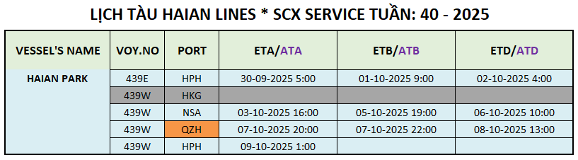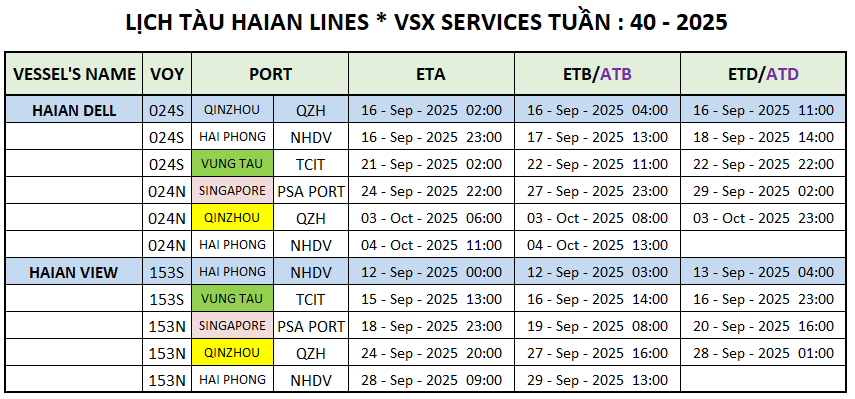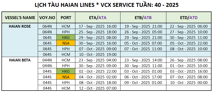 LỊCH TÀU CONTAINER QUỐC TẾ TUẦN: 40 - 2025