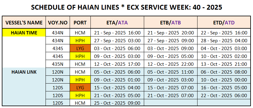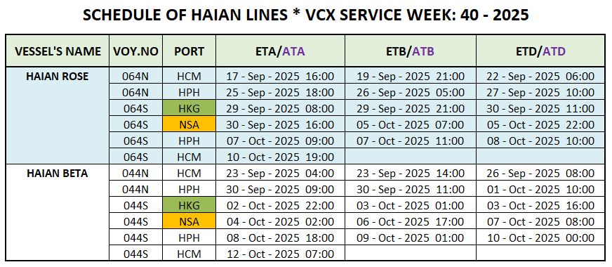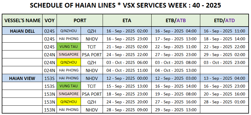 VESSEL'S INTERNATIONAL SCHEDULE WEEK: 40 - 2025